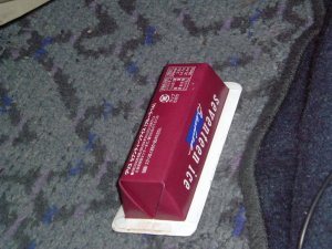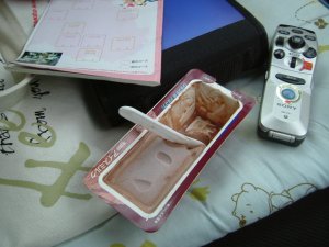 左はアイスの自販機です。お腹が減ったので1つ買うことにしました。 右が、その買ったアイスです。チョコ・・・なんとか味です(;^_^A しかし、この後恐ろしいことに・・・。 時間が遅くなりそうだったので、食べながら帰ることに。 って、このタイプのアイスはたべれねぇ〜(;^_^A 信号が少ないこの地域は、このアイスには天敵だった! |