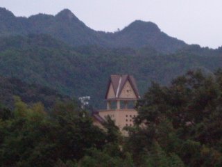 左は近くの川を撮ったもので、右が謎?の時計台です。 時計台の正体は、中学校でした。 |